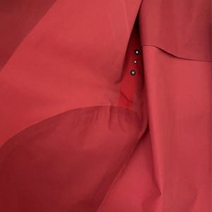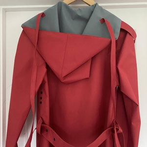 Hepburn Single Breasted Mackintosh in Red Rubber Proofed Polyester quantity
